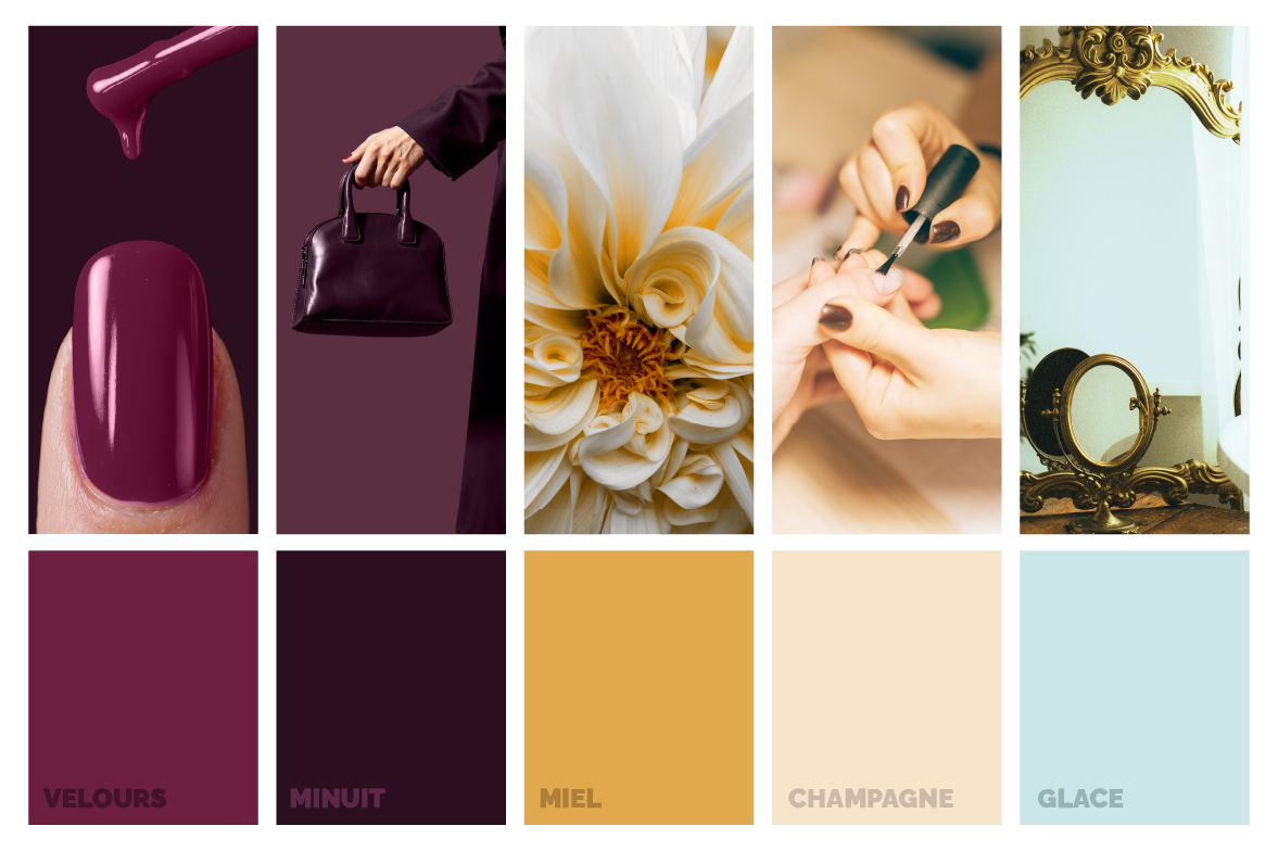projet d’étude : un salon de manucure haut-de-gamme à l’esthétique élégante, féminine et chaleureuse, positionné dans un univers luxe et éditorial